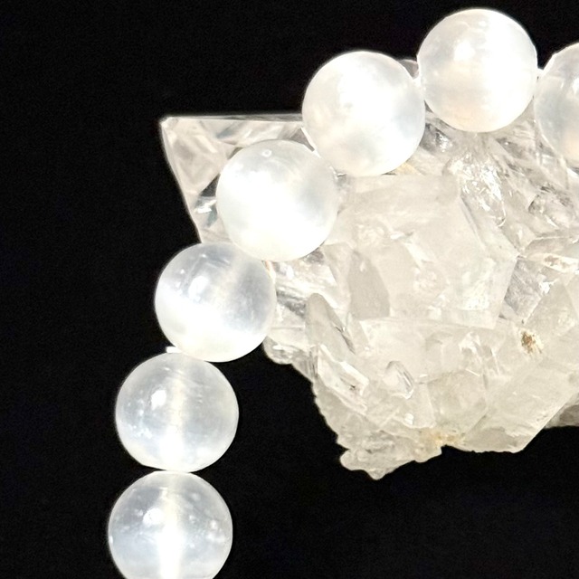やわらかな乳白色の輝きが美しい、セレナイトのブレスレット。