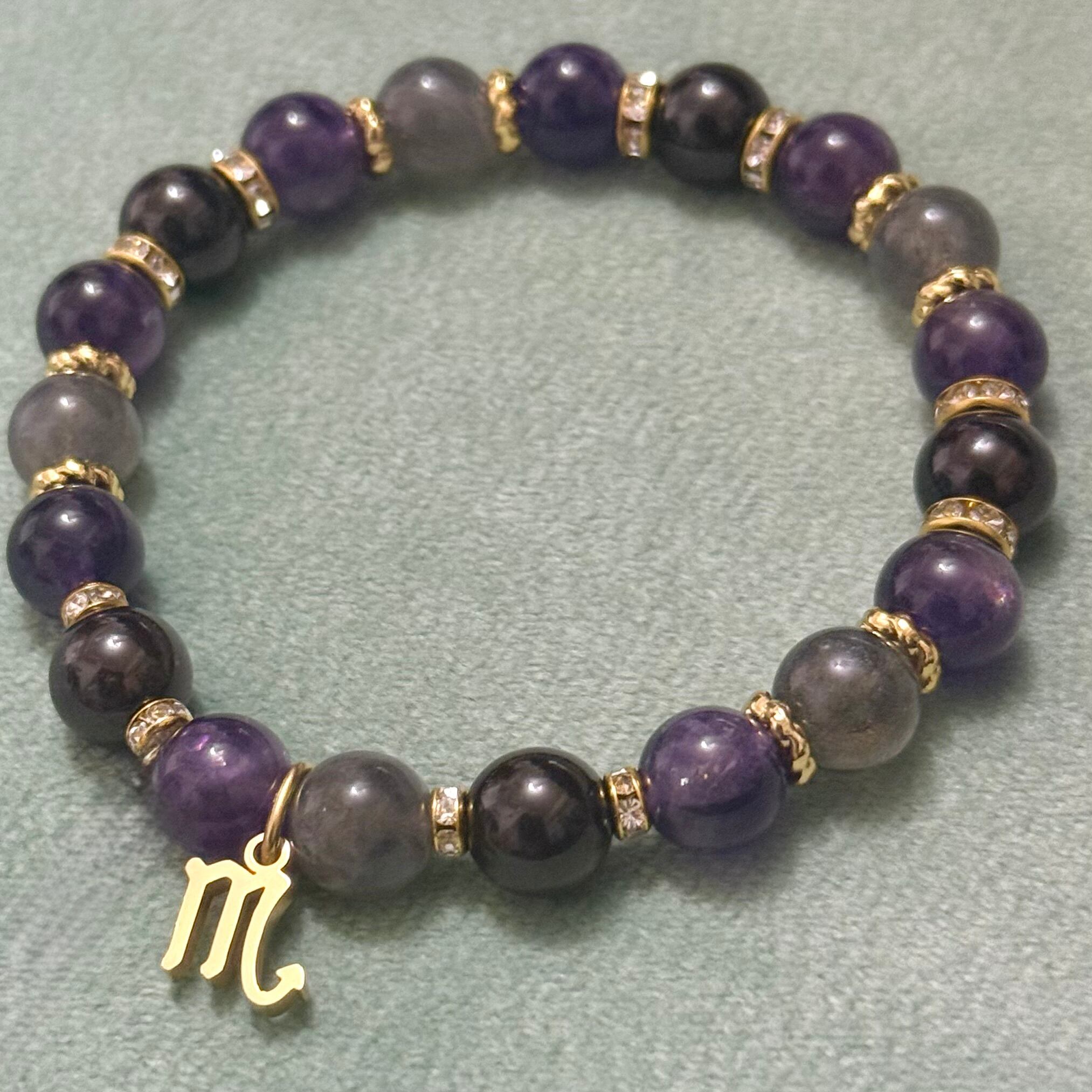 【選べる蠍座天然石パワーストーンブレスレット】 10月11月生まれ アメジスト ラブラドライト ガーネット 星座石&誕生石
