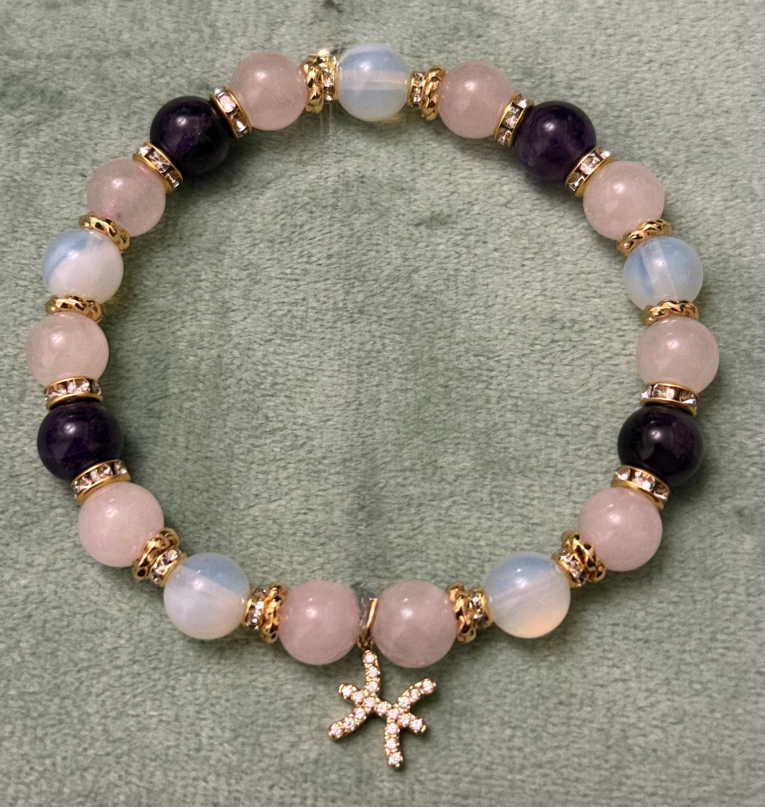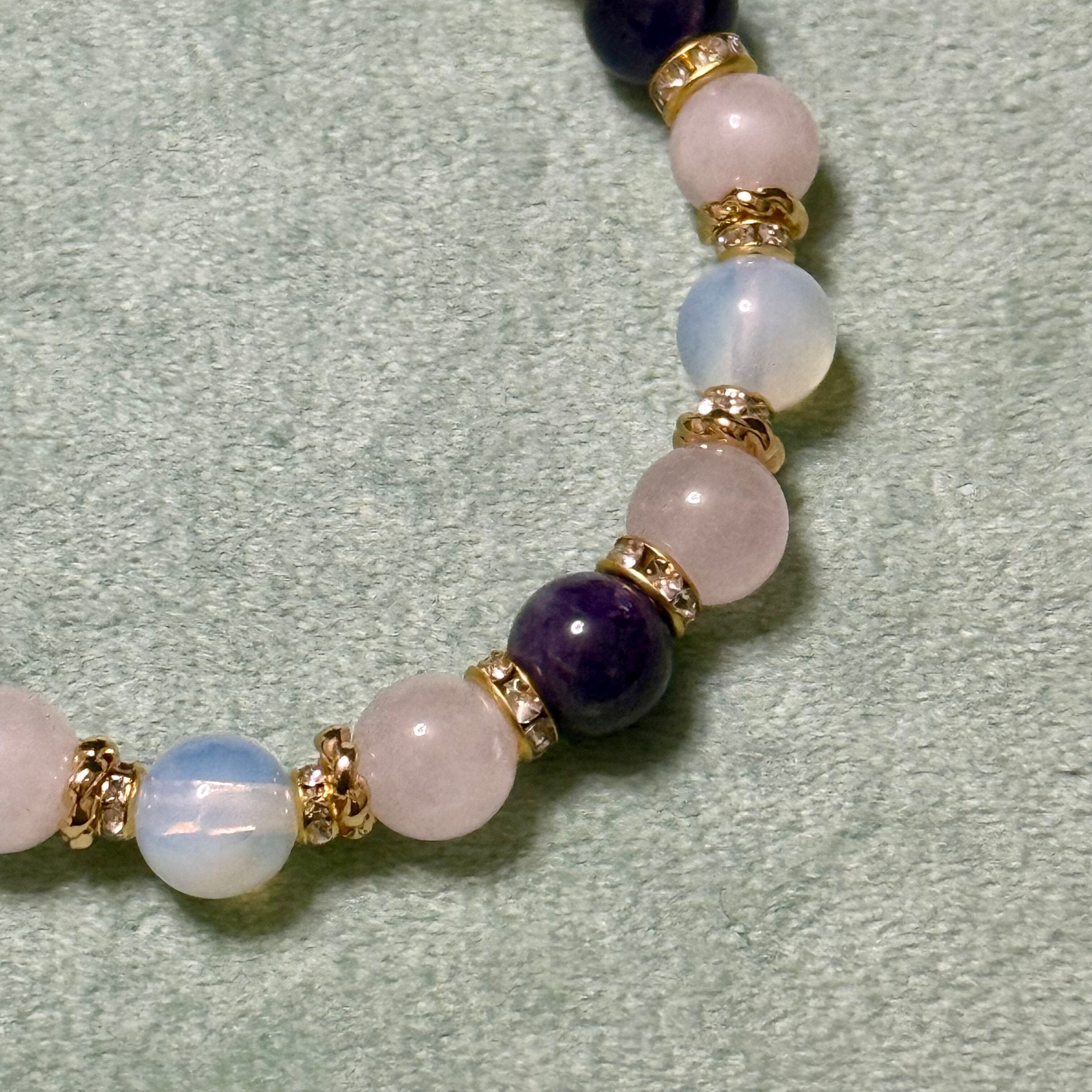 直感と愛を育むやさしい光の天然石パワーストーンブレスレット アメジスト オパライト ローズクォーツ