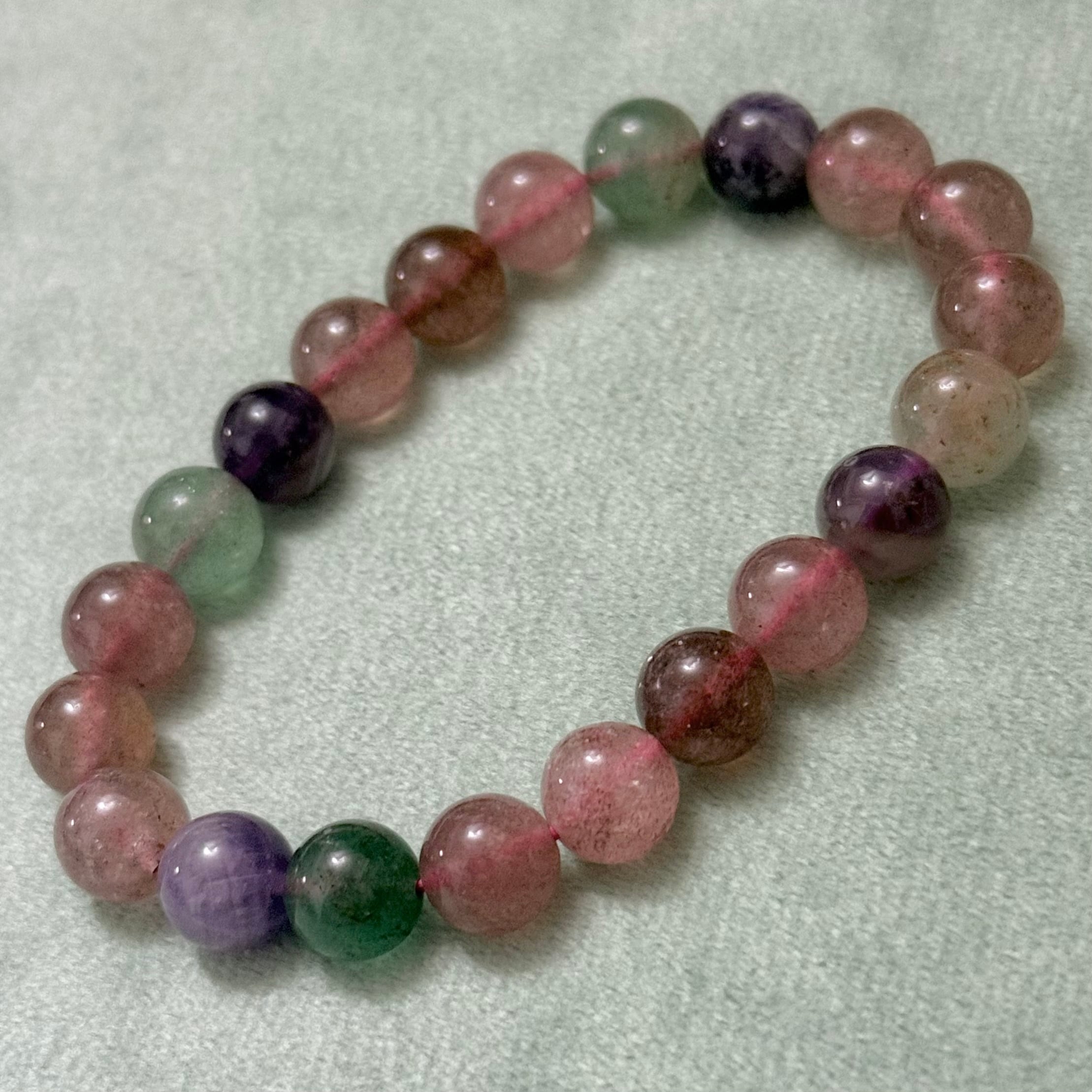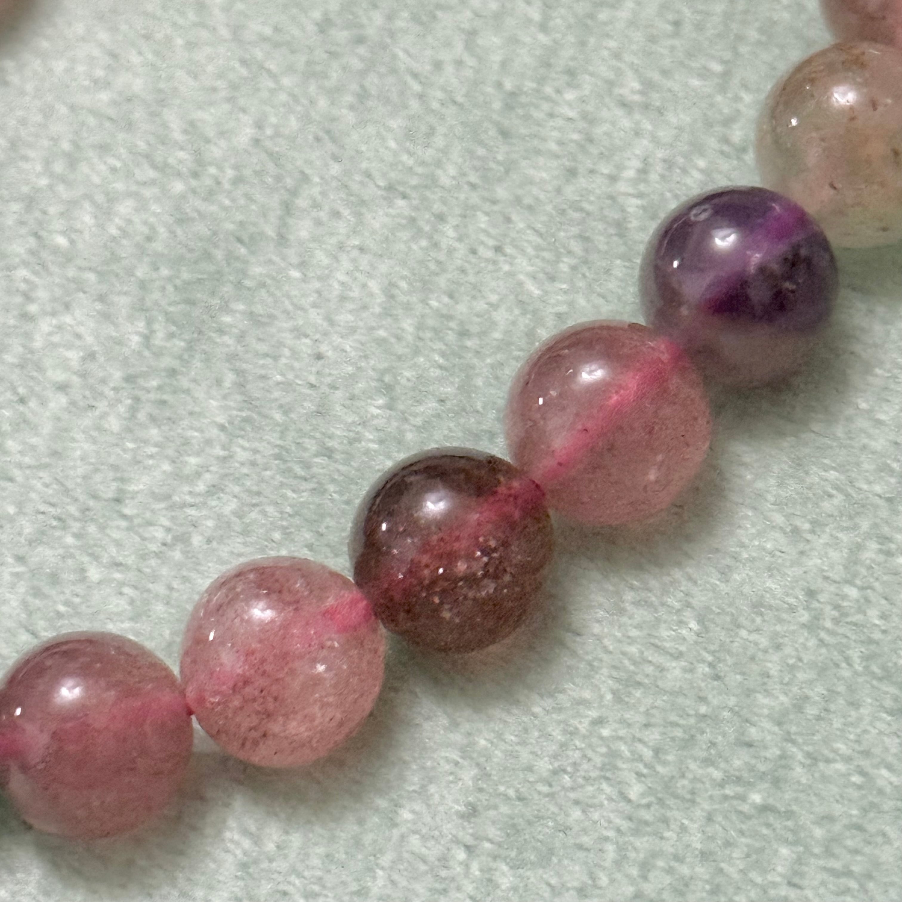 【一点もの】愛と癒しを調和させる グリーン&ピンクストロベリークォーツ × アメジスト天然石パワーストーンブレスレット