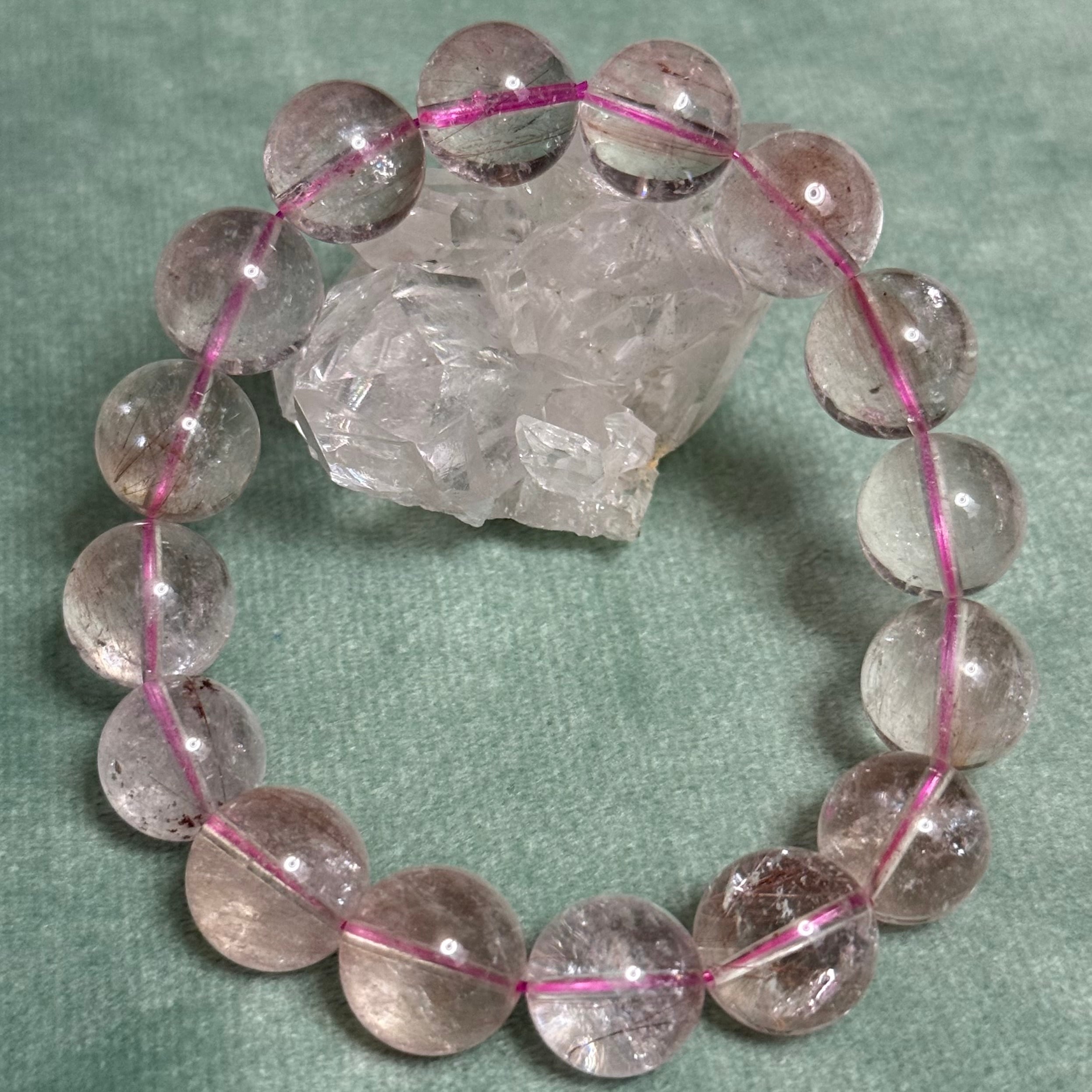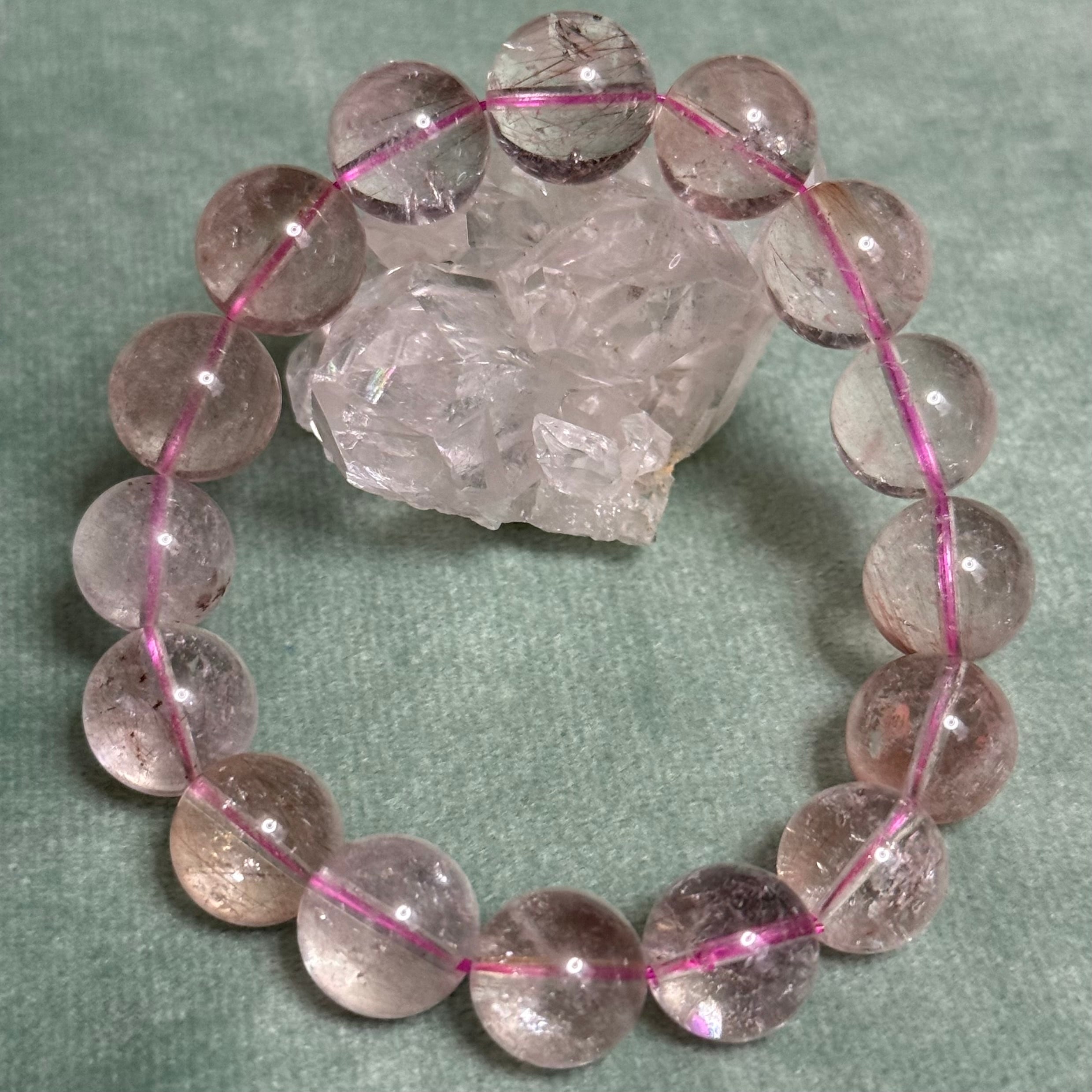 柔らかさと華やかさをあわせ持つ、美しいピンクルチルクォーツのブレスレットです。