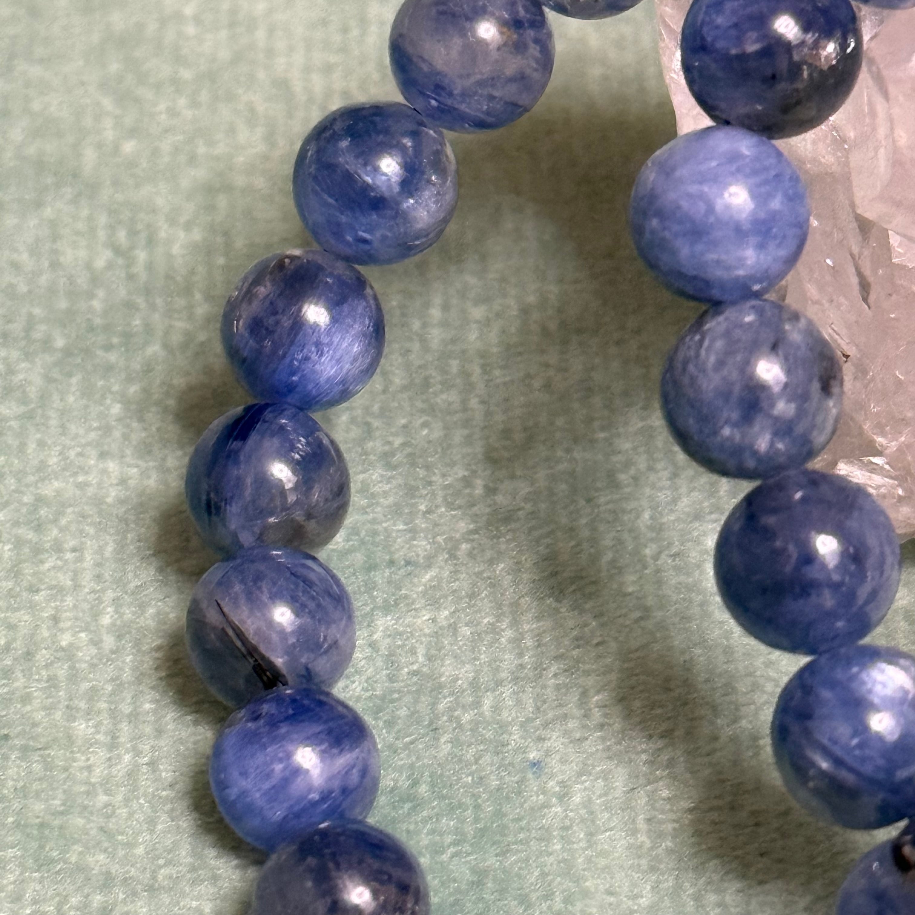 澄んだブルーからスチールブルーまで、静かな奥行きを感じさせるカイヤナイトのブレスレット。