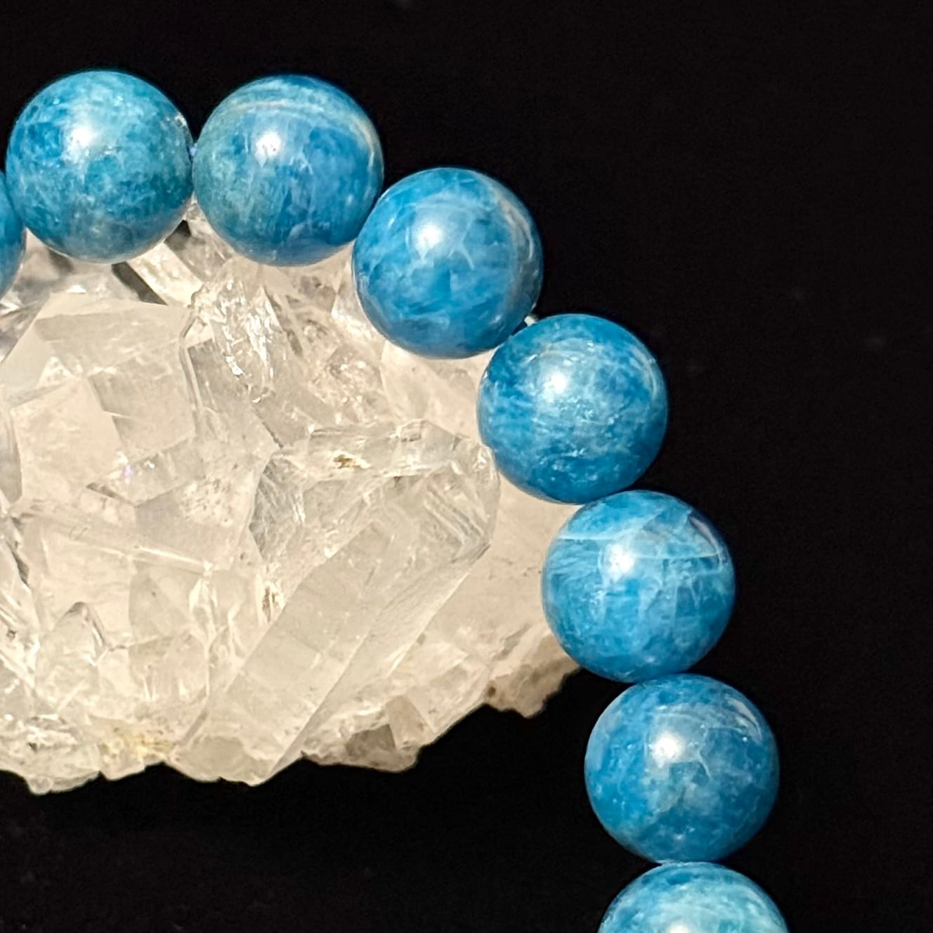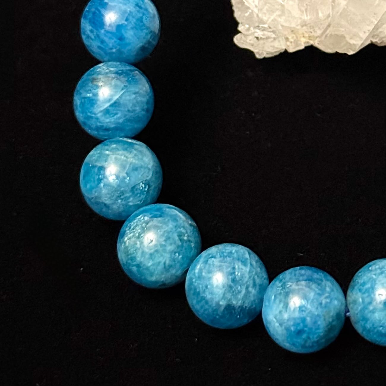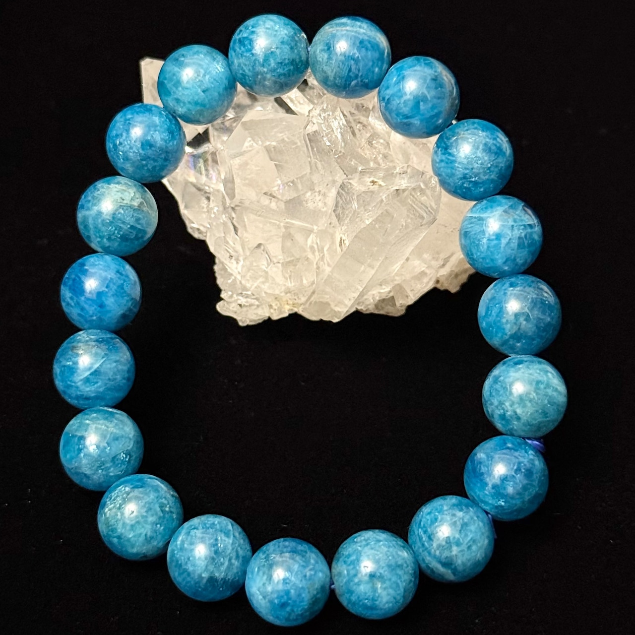 鮮やかで透明感のあるブルーが印象的な、アパタイト10mm+玉のブレスレット。
