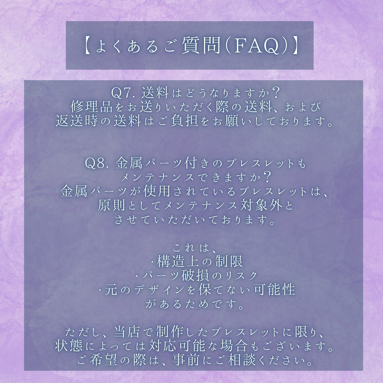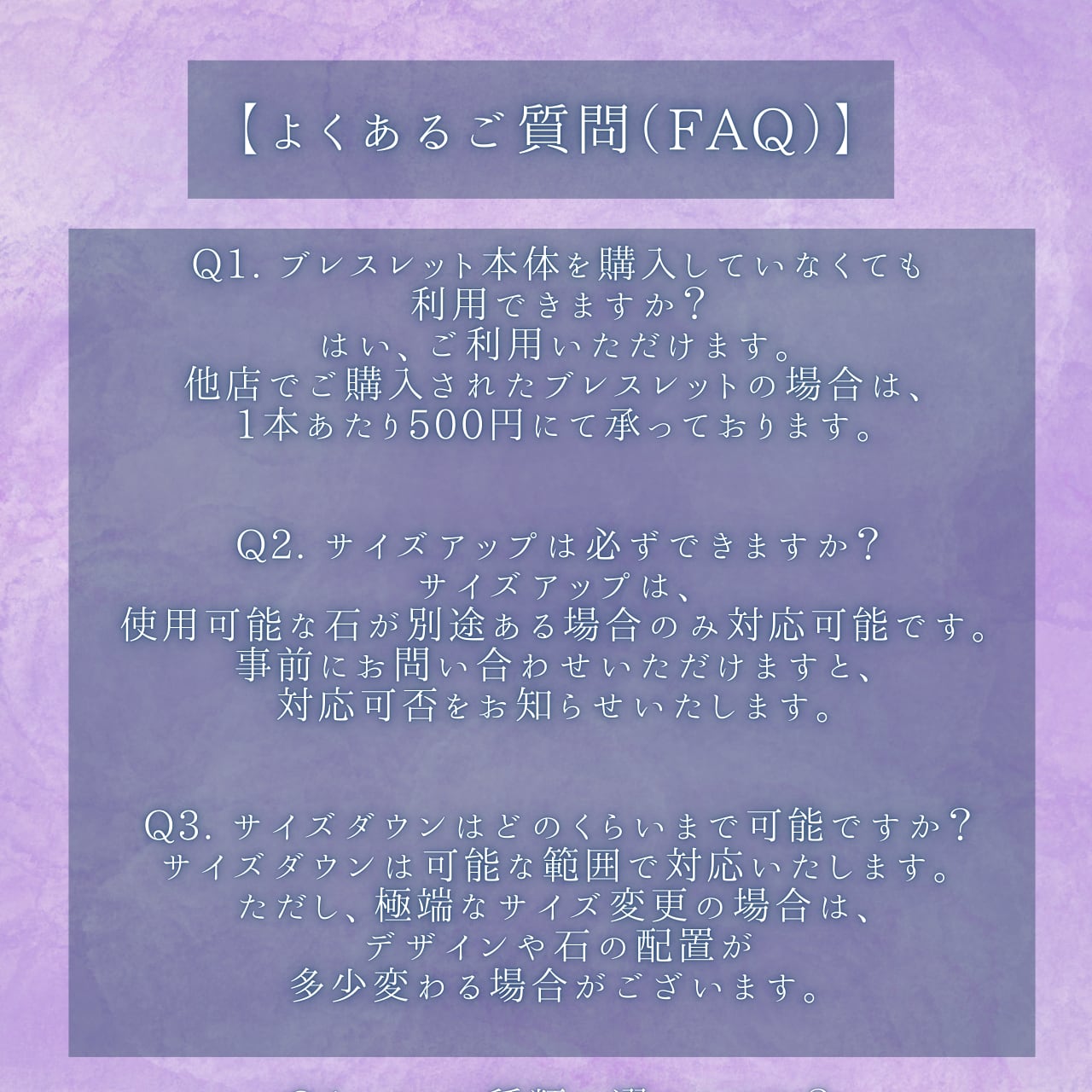 当店でご購入いただいたブレスレットは、