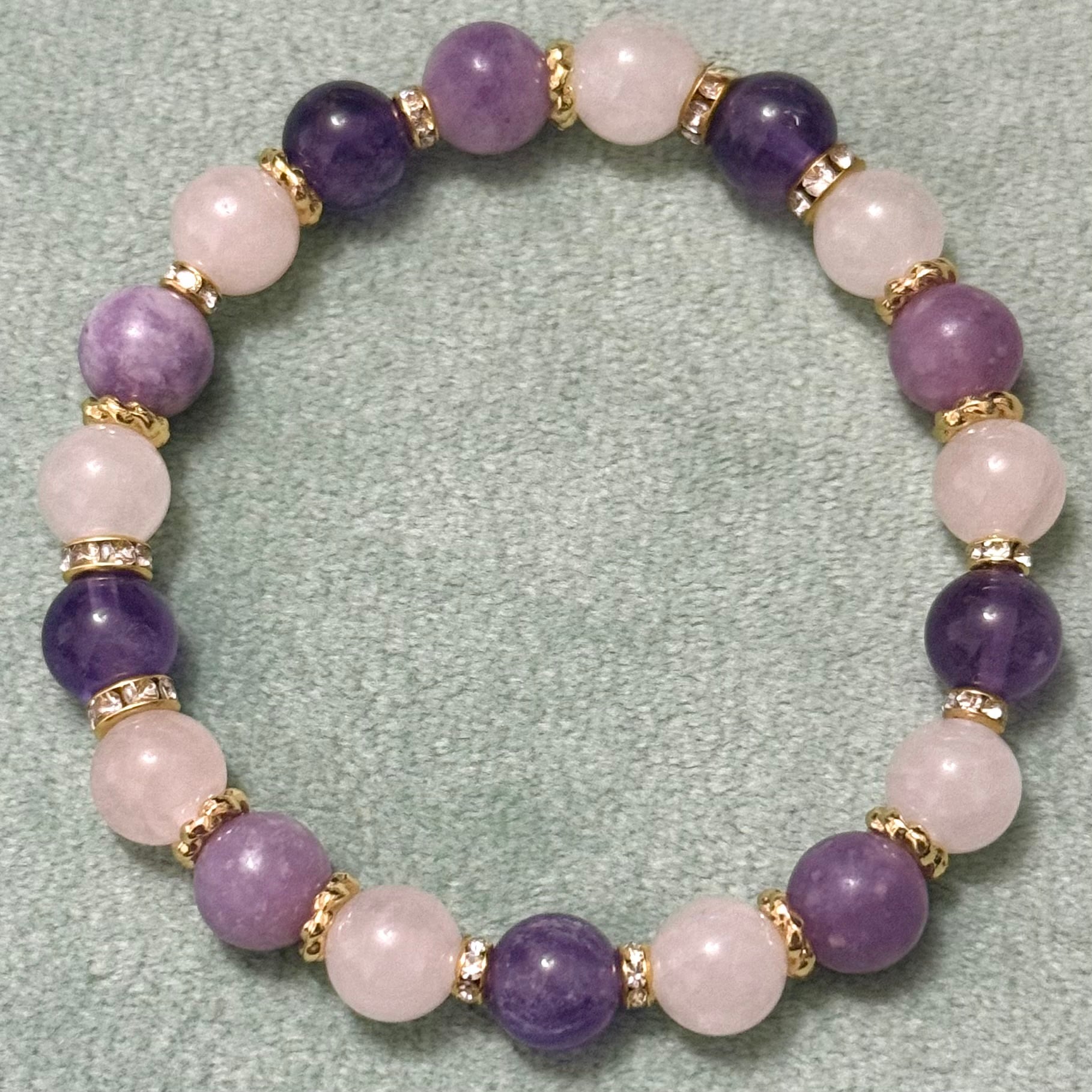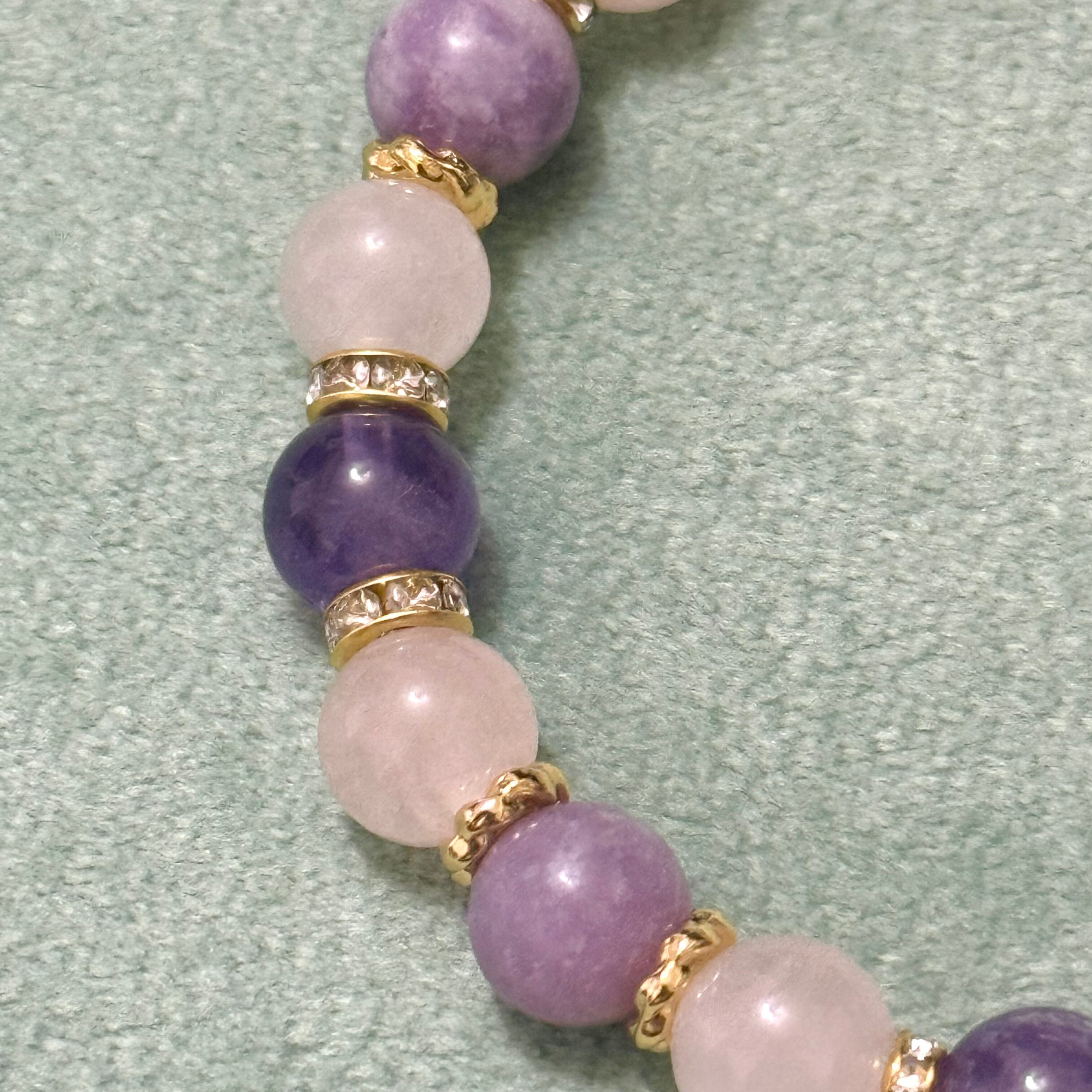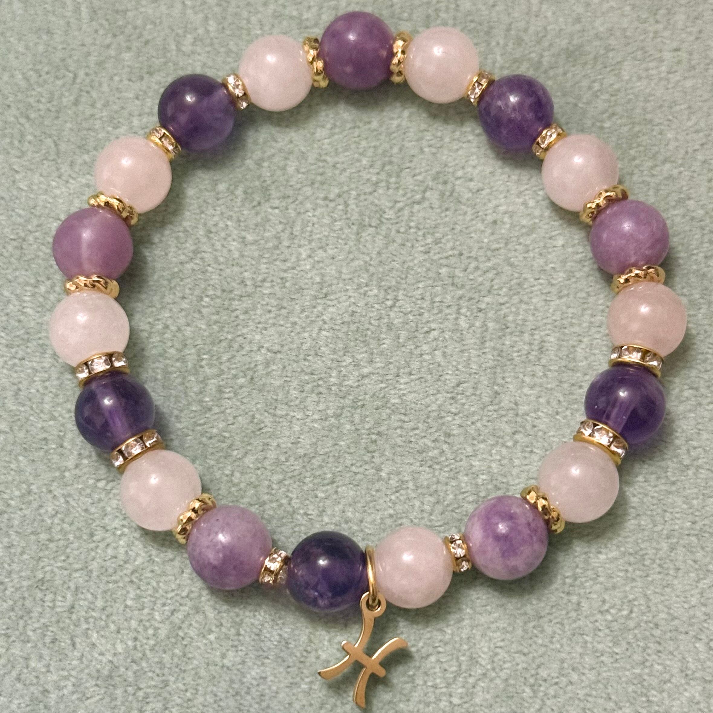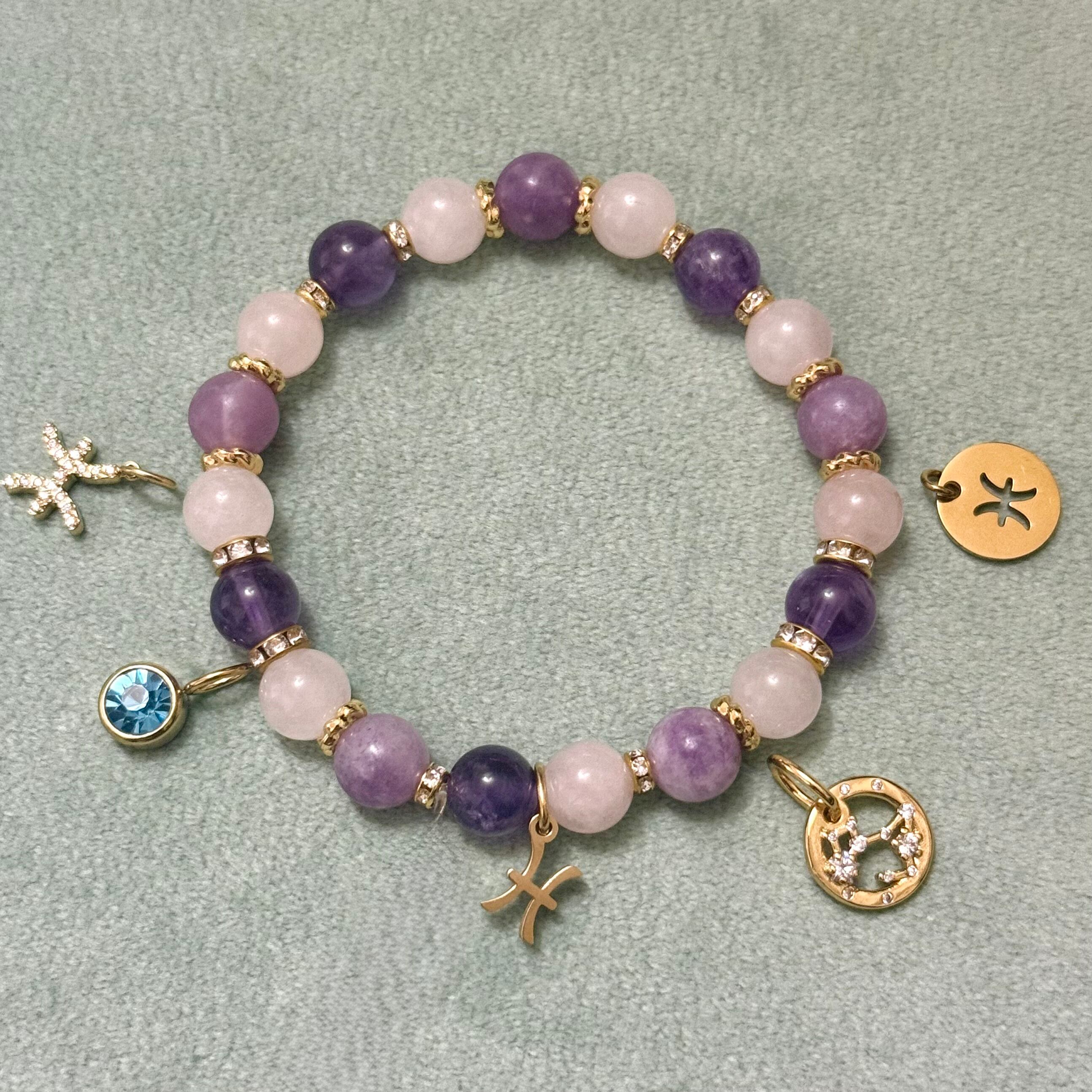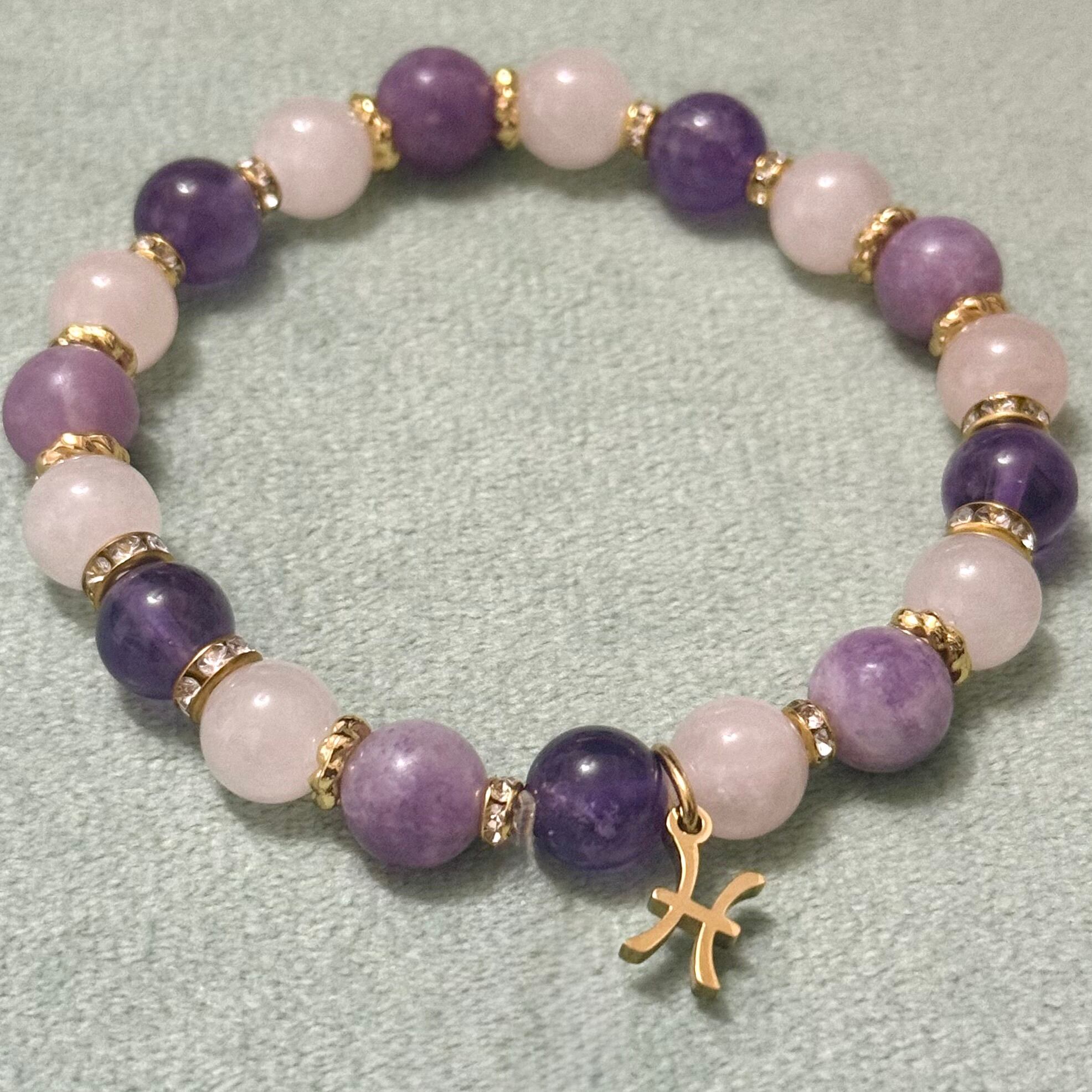 【魚座デザインVer】2月3月生まれ アメジスト ライラックレピドライト ローズクォーツ 星座石&誕生石 天然石ブレスレット