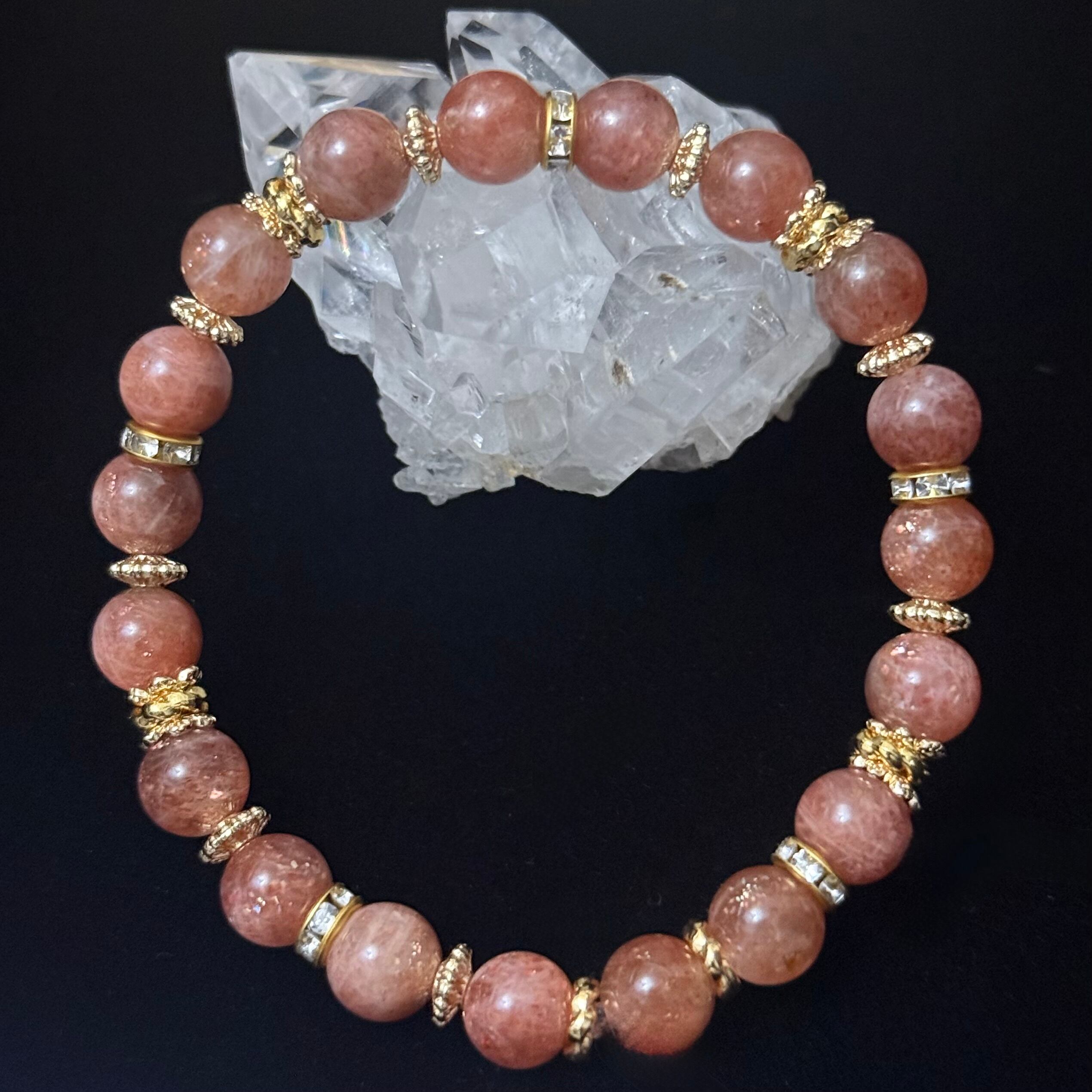 【オレンジサンストーン デザインVer】 内なる太陽を呼び覚ます、希望と自信のストーン 天然石パワーストーンブレスレット