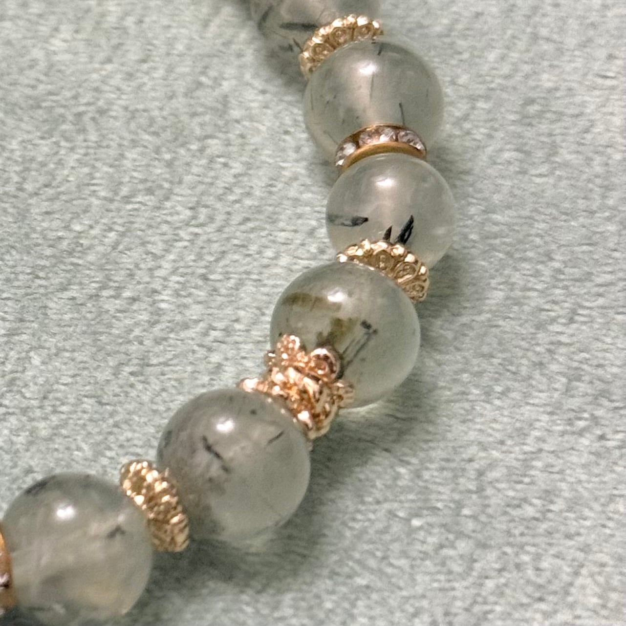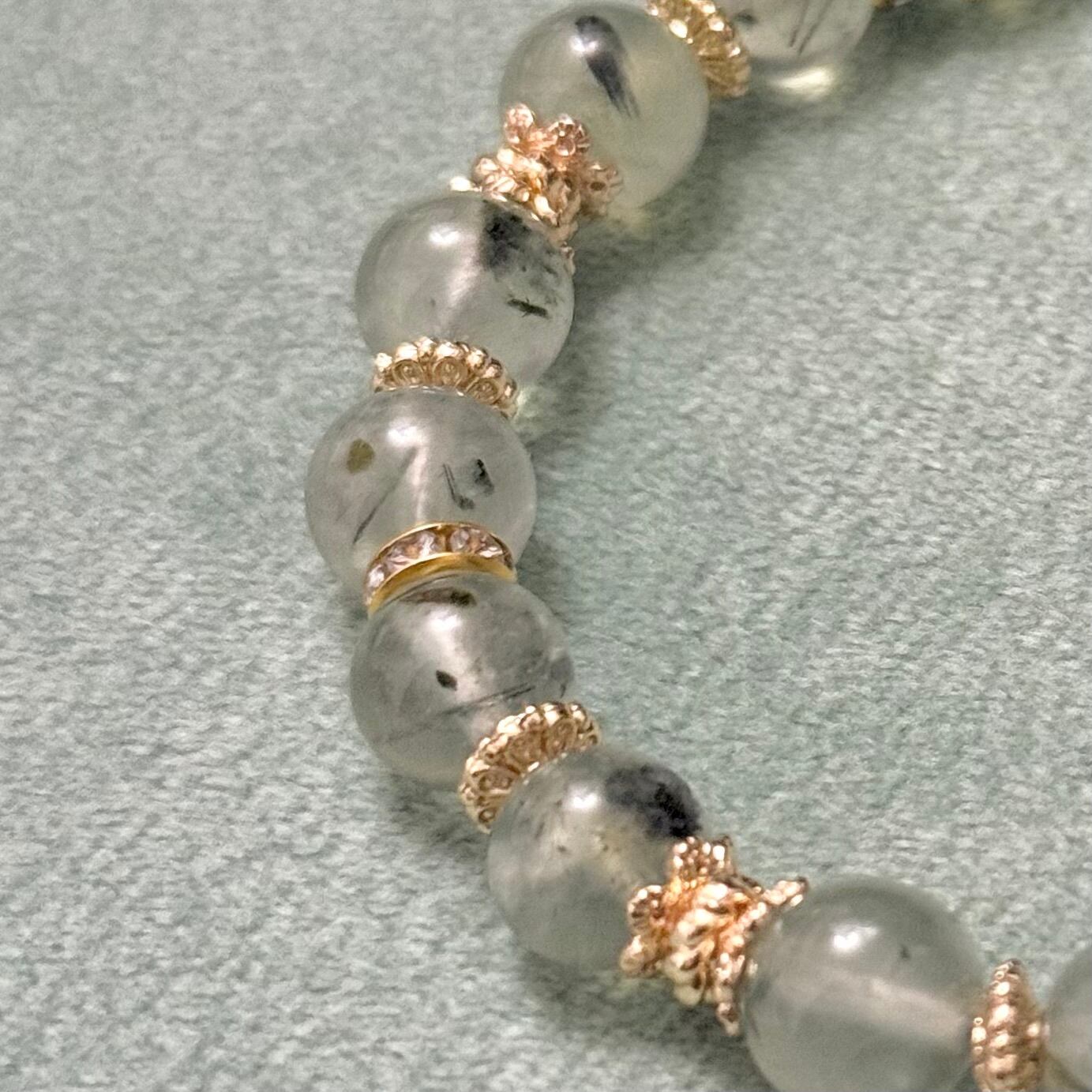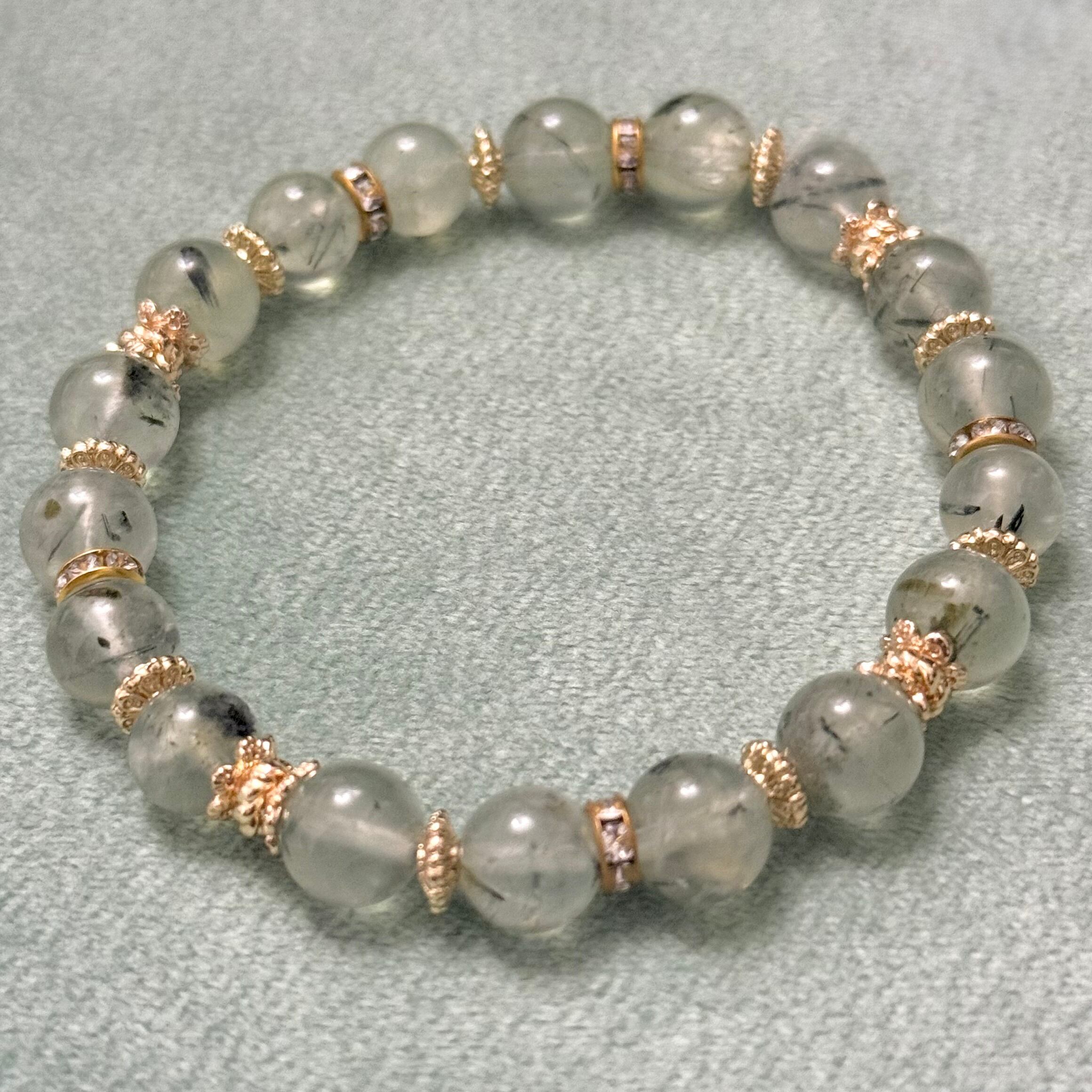 プレナイト トルマリンインプレナイト ブラックトルマリン入り 洞察の石 浄化 ヒーリングストーン 天然石ブレスレット パワーストーン