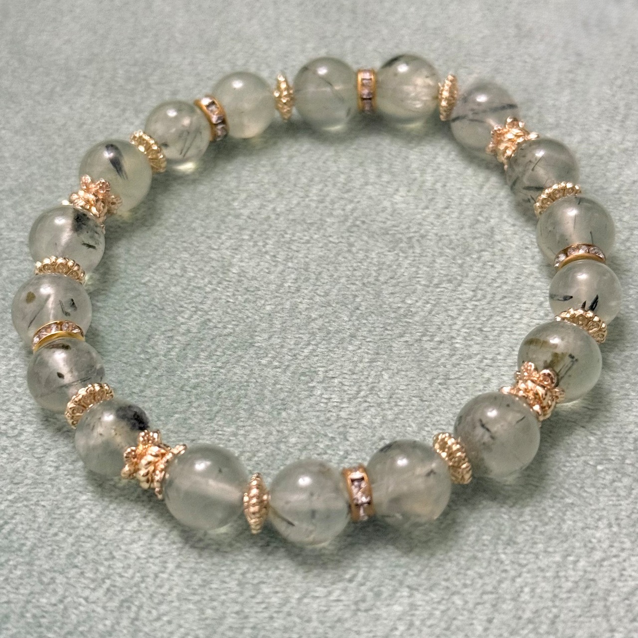 【トルマリンインプレナイト デザインVer】 柔らかな癒しと芯の強さを宿す、調和のグリーングレイブレスレット
