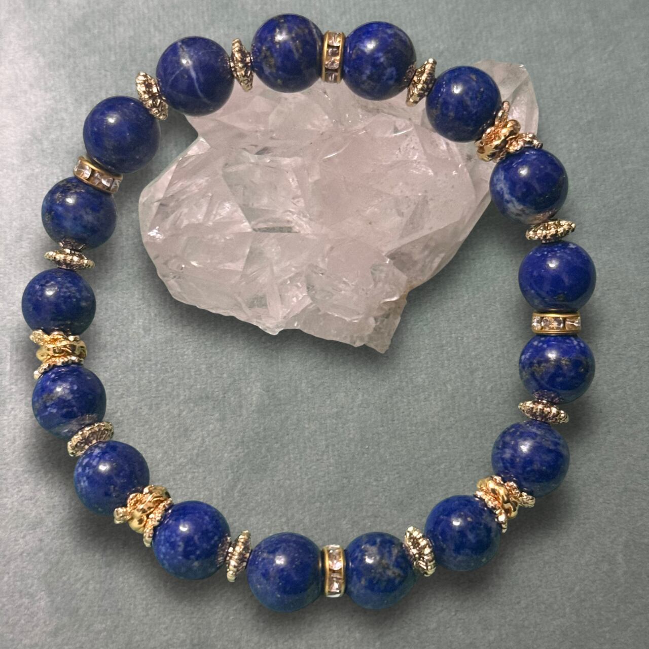 【高品質ラピスラズリ(5A) デザインVer】 夜空を閉じ込めた、叡智と真実を導く至高のブルー 天然石パワーストーンブレスレット
