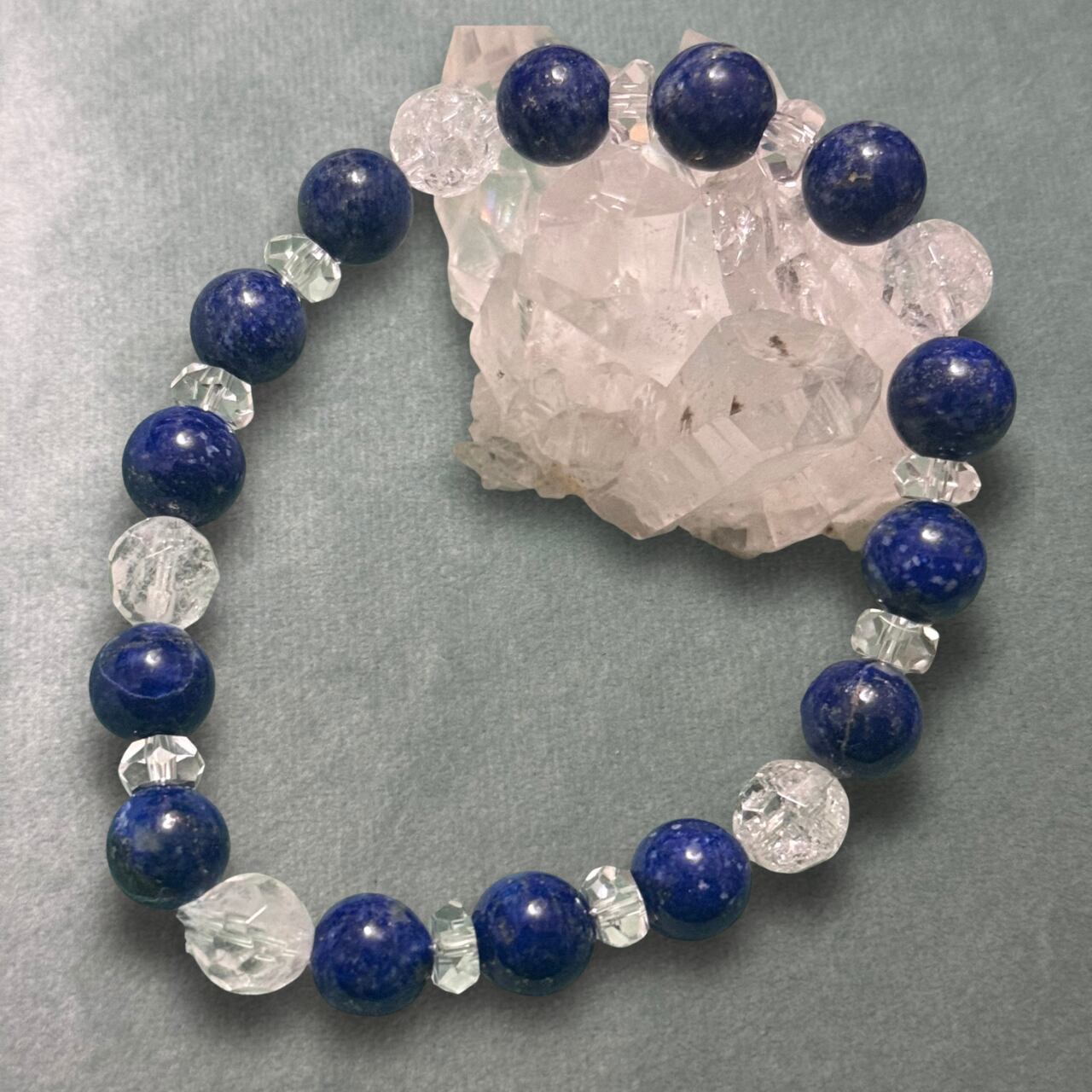 【高品質ラピスラズリ(5A) 水晶五芒星Ver】 夜空を閉じ込めた、叡智と真実を導く至高のブルー 天然石パワーストーンブレスレット