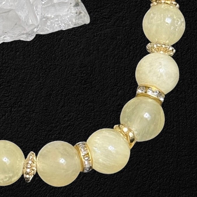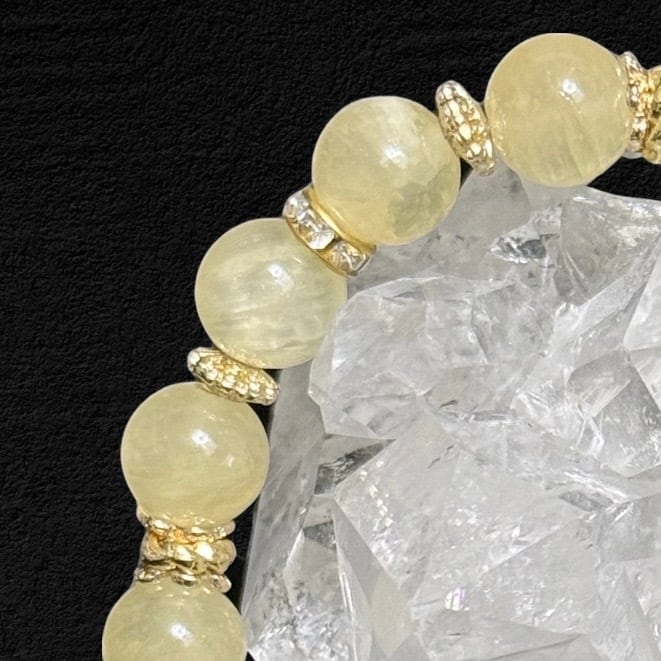 柔らかなレモンイエローの色合いが美しい、AA++品質のイエローアラゴナイトのブレスレット。