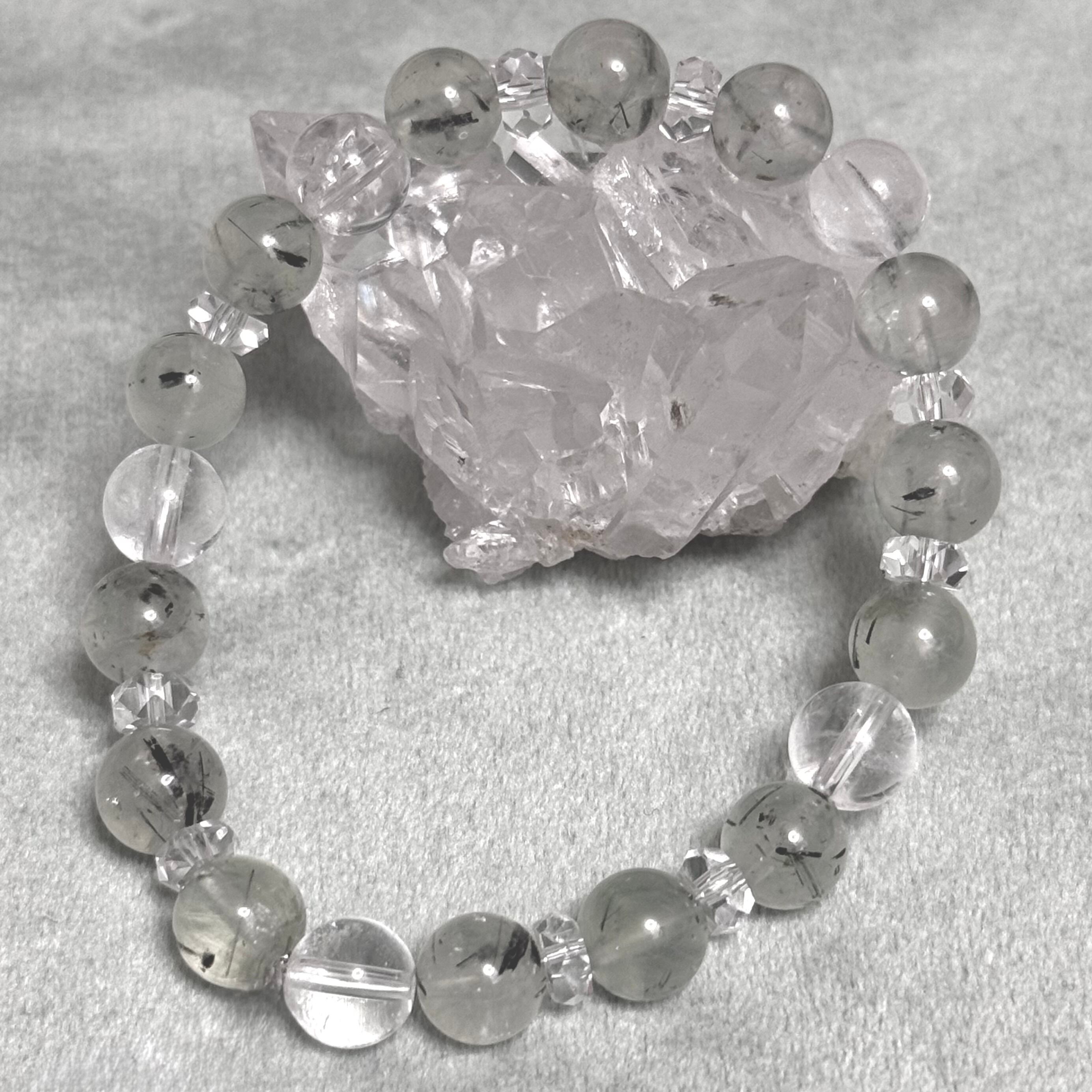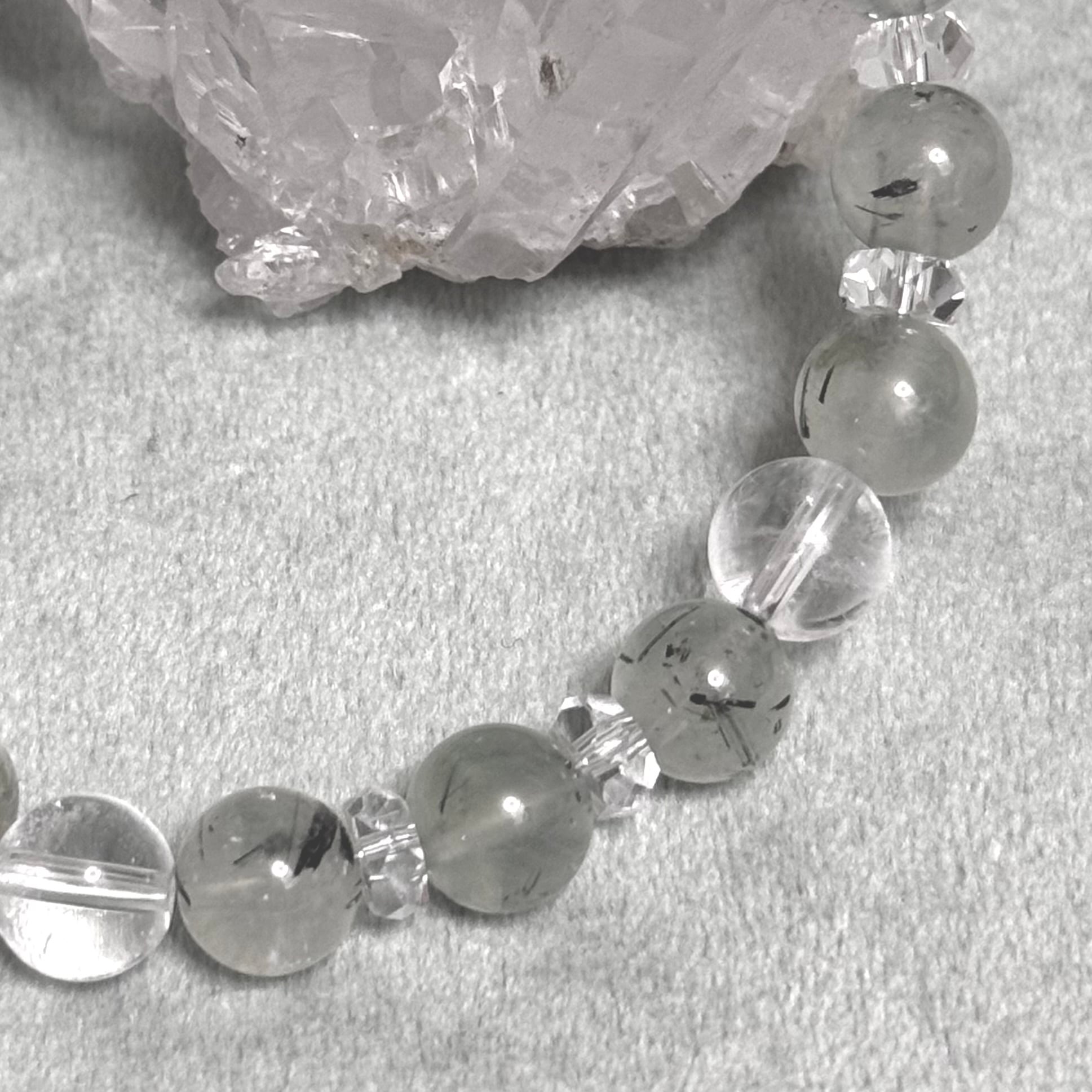 プレナイト トルマリンインプレナイト ブラックトルマリン入り 洞察の石 浄化 ヒーリングストーン 天然石ブレスレット パワーストーン