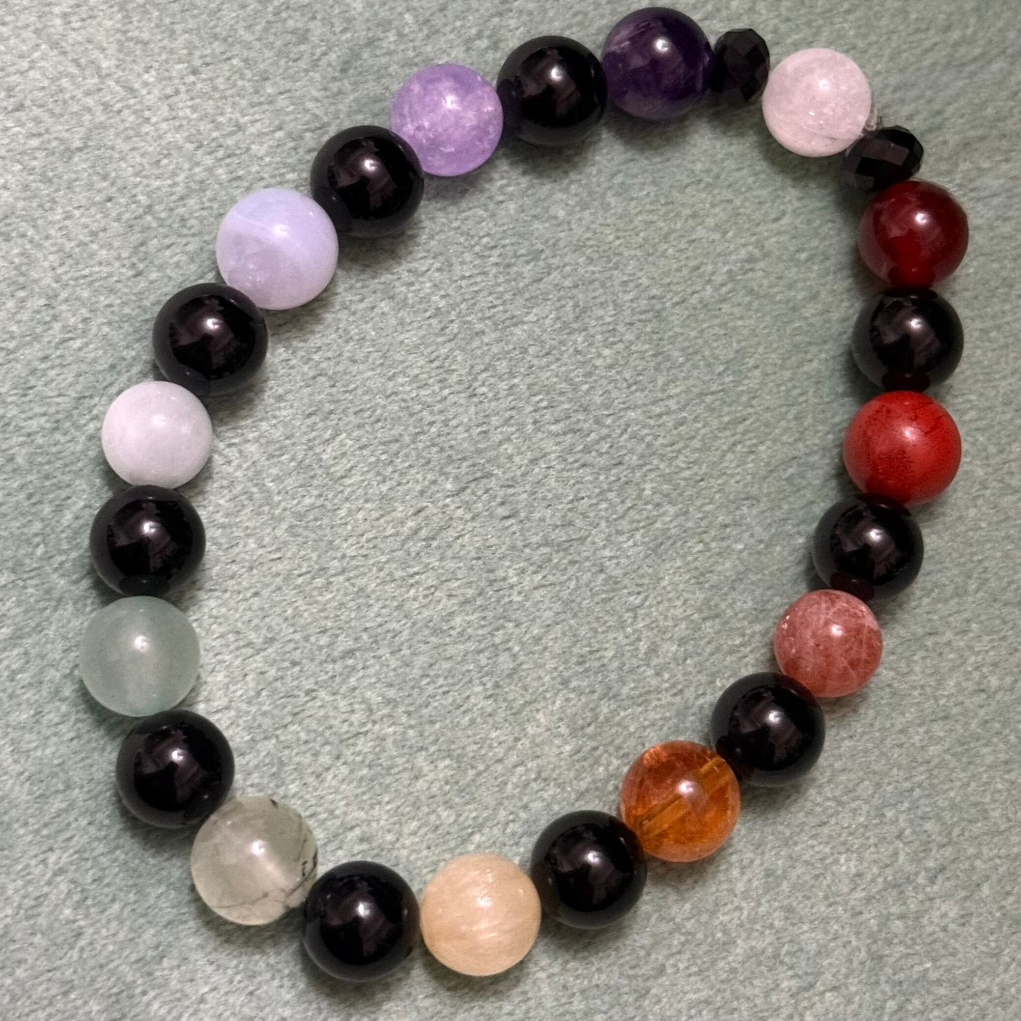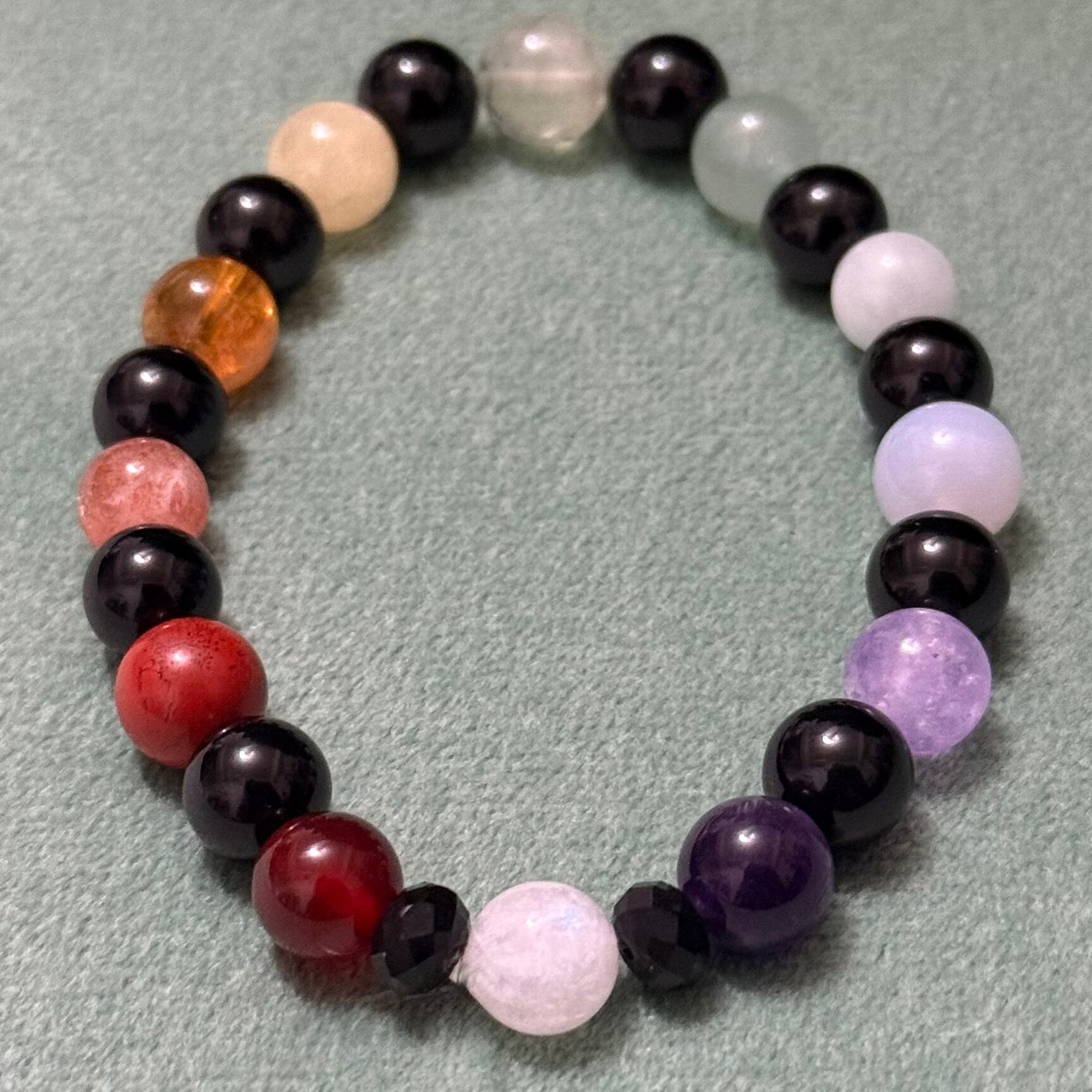 【7チャクラシリーズオニキスVer】レインボー天然石パワーストーンブレスレットRainbow