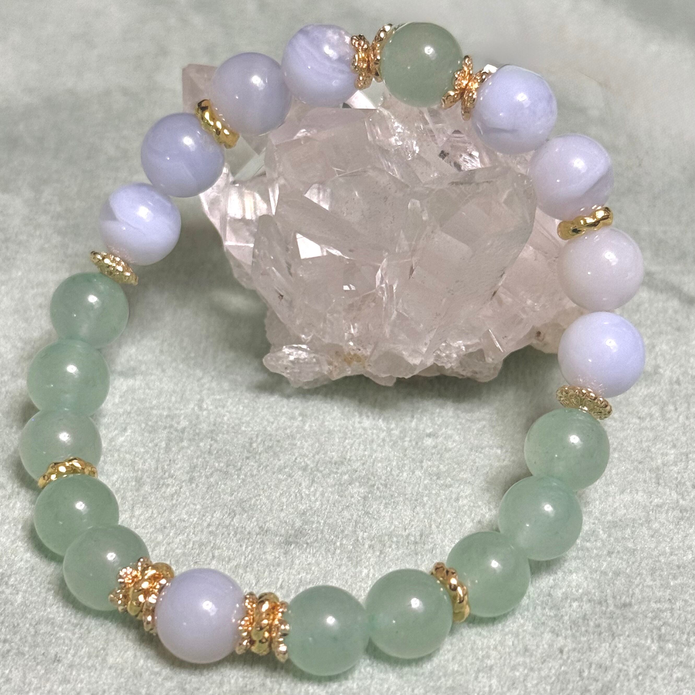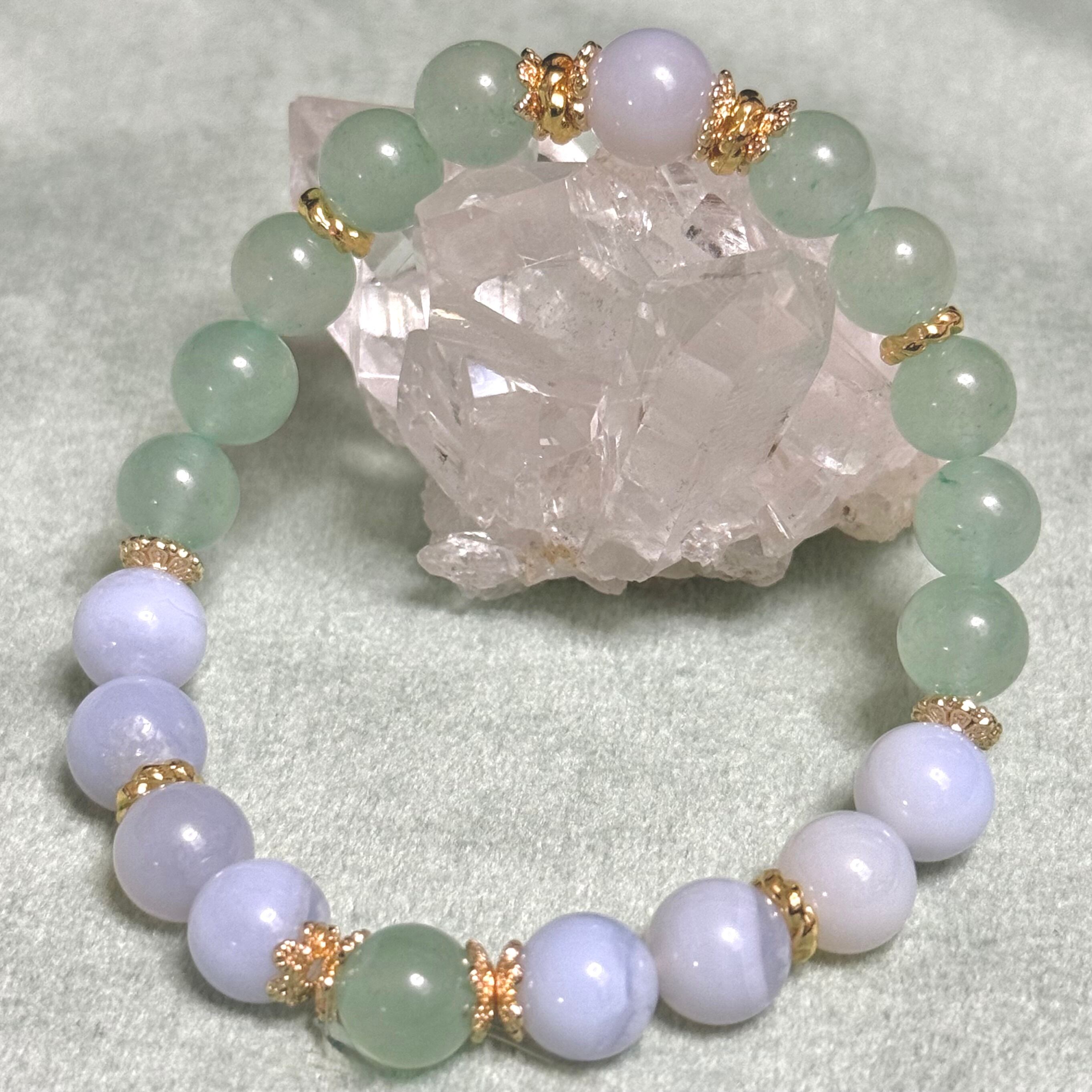 Blue Chalcedony, Green Aventurine, Natural Stone Bracelet, Crystal Bracelet, Healing Crystal, Gemstone Jewelry, Pastel Bracelet, Handmade Bracelet, Calming Stone, Spiritual Jewelry