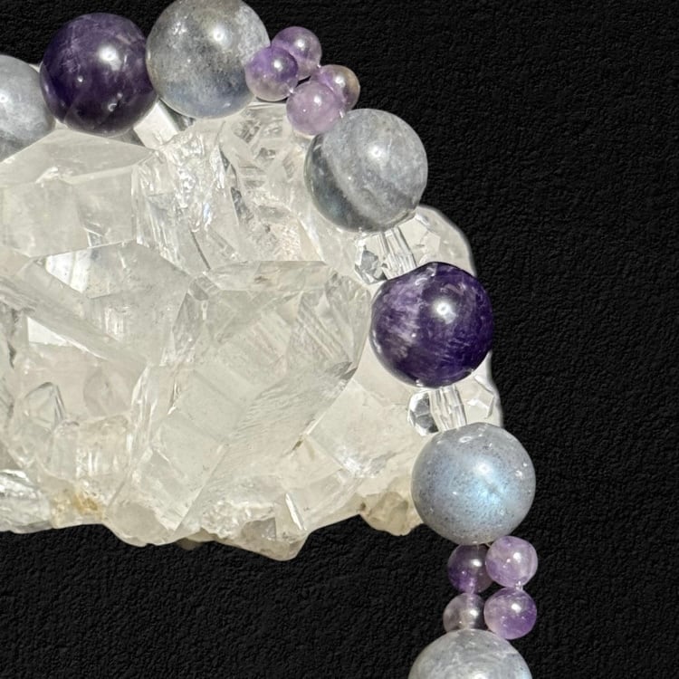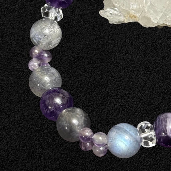 【ラブラドライト×アメジストx水晶】 光と静寂が交差する、内なる感覚を研ぎ澄ます一本 天然石パワーストーンブレスレット Labradorite & Amethyst