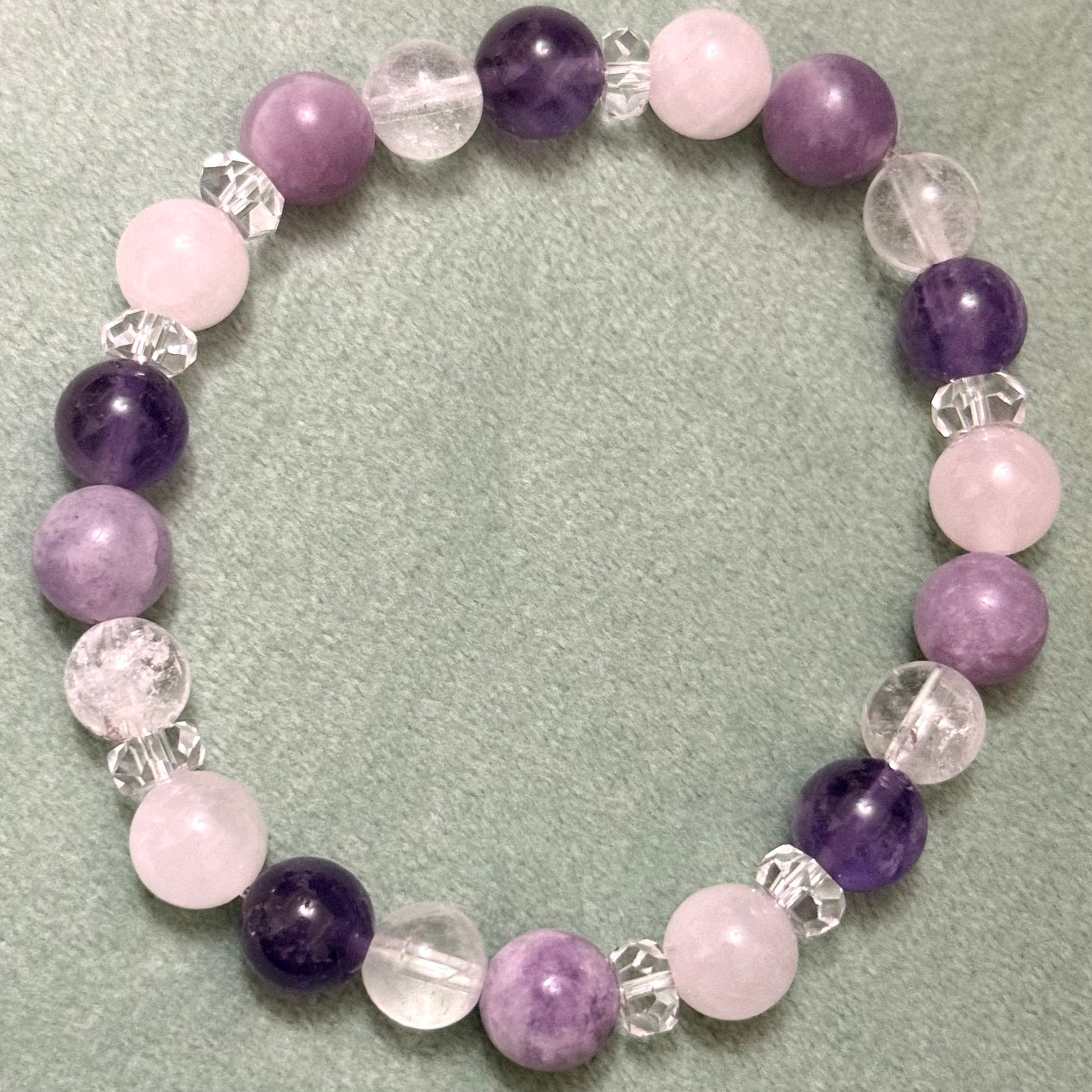 【魚座ナチュラルVer】2月3月生まれ アメジスト ライラックレピドライト ローズクォーツ 星座石&誕生石 天然石ブレスレット